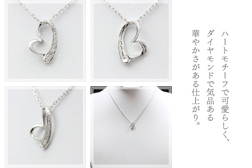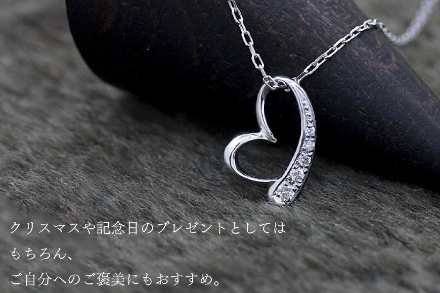 - ネックレス K10WG ホワイトゴールド オープンハート ダイヤモンド 0.06ct 10金 レディース ペンダント 10金 【f062-k10wg】 [オーダーメイドジュエリーメイ 山梨県 韮崎市 20745091]