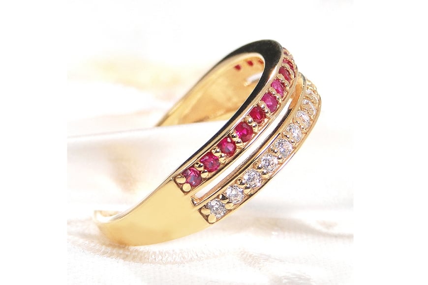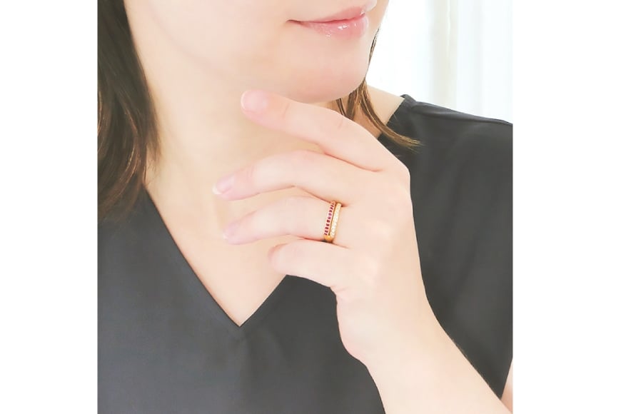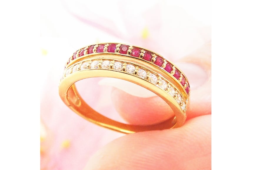 - 指輪 K18YG イエローゴールド ルビー ダイヤモンド 0.21ct 5~16号 レディース リング 18金 ハーフエタニティ 2列 重ねづけ風 2連 リング アクセサリー ジュエリー アクセ 【f186-k18yg-rd】 [オーダーメイドジュエリーメイ 山梨県 韮崎市 20745067]