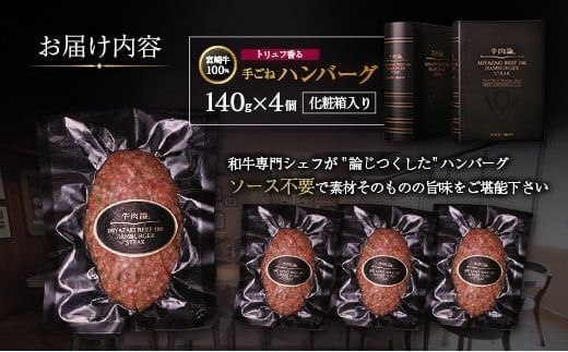- 宮崎牛100% トリュフ香る 手ごねハンバーグ 140g×4個 国産牛 ブランド 冷凍 惣菜 個包装