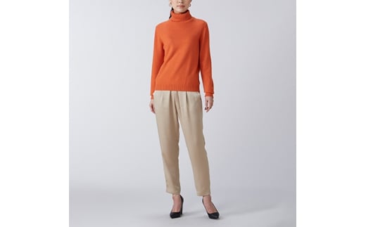 - 日本製 カシミヤ100% レディース タートルネック オレンジ Lサイズ[0816]