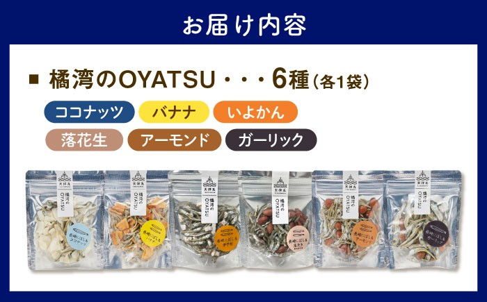【長崎デザインアワード入賞】 橘湾のOYATSU 6種(アーモンド・ガーリック・バナナ・ココナッツ・落花生・いよかん)食べ比べセット 長崎県/株式会社天洋丸 [42ALAC014] 煮干し いりこ イリコ 魚介 スナック 菓子 おつまみ 珍味 ドライフルーツ ナッツ アーモンド ピーナッツ 落花生 エタリの塩辛 伝統食 健康 ヘルシー おやつ 食べ比べ 詰め合わせ セット 雲仙 長崎