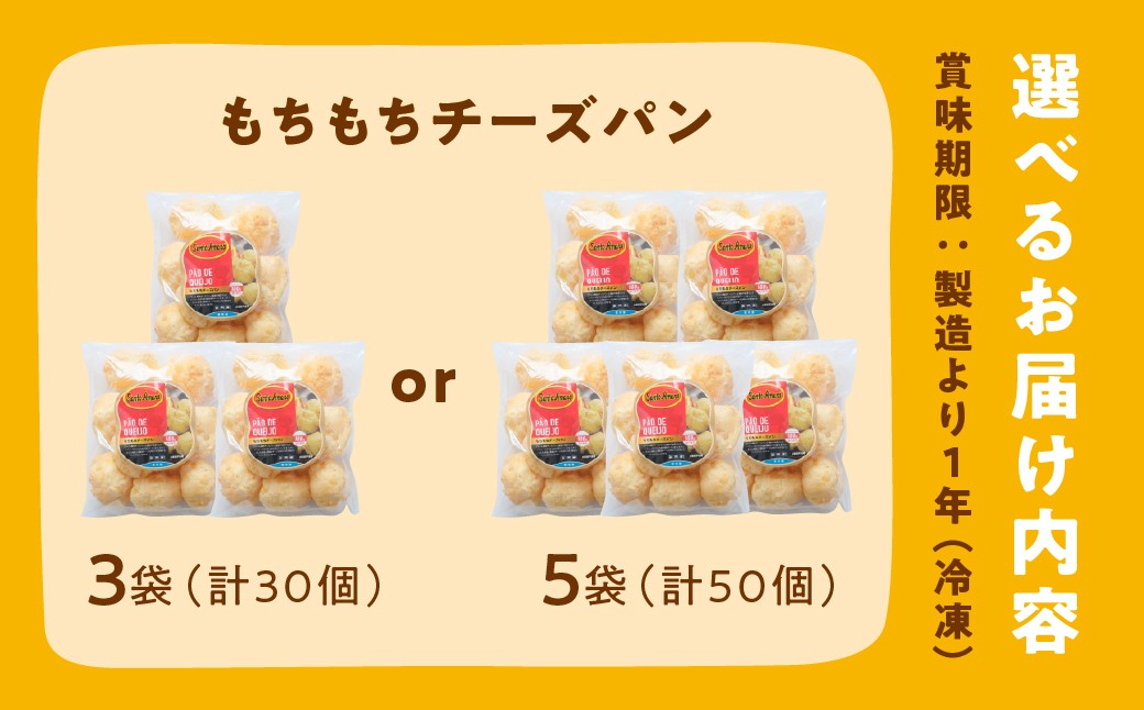 - もちもちチーズパン 選べる 30~50個入 小麦不使用 パン チーズ もちもち 美味しい 人気 ぱん チーズパン 冷凍 長期保存 お取り寄せ セット おすすめ 朝食 おやつ 冷凍パン 詰め合わせ ポンデケージョ 1万円 10000円 送料無料 愛知県 豊橋市