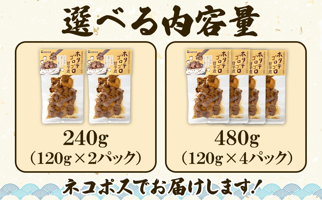 【選べる内容量】北海道産 ホタテゴロゴロ 甘辛煮 240g~480g