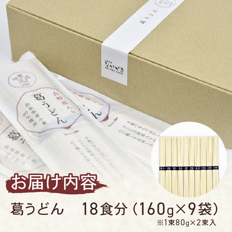 うどん 手延べうどん 18食 80g×18束 麺 めん 麺類 手延べ 葛うどん 葛 小分け 弾力 もっちり コシ つるつる のど越し 簡単調理 アレンジ 料理 時短 吉野葛入り 奈良県 なら nkg01