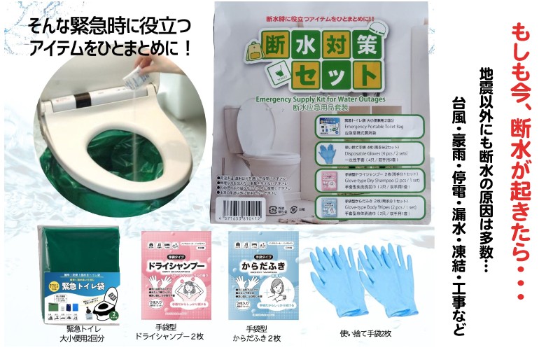 - 防災断水対策セット(緊急トイレ、シャンプー、からだふき)×5セット