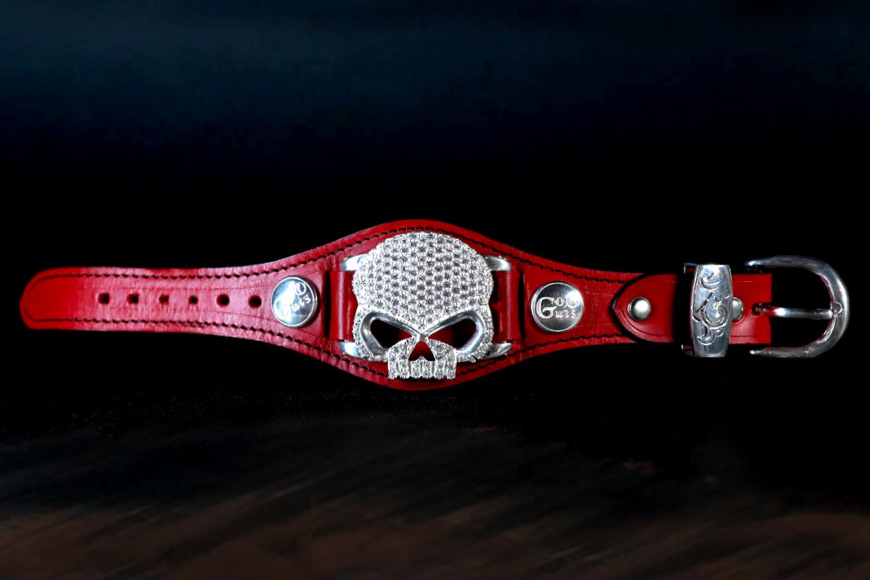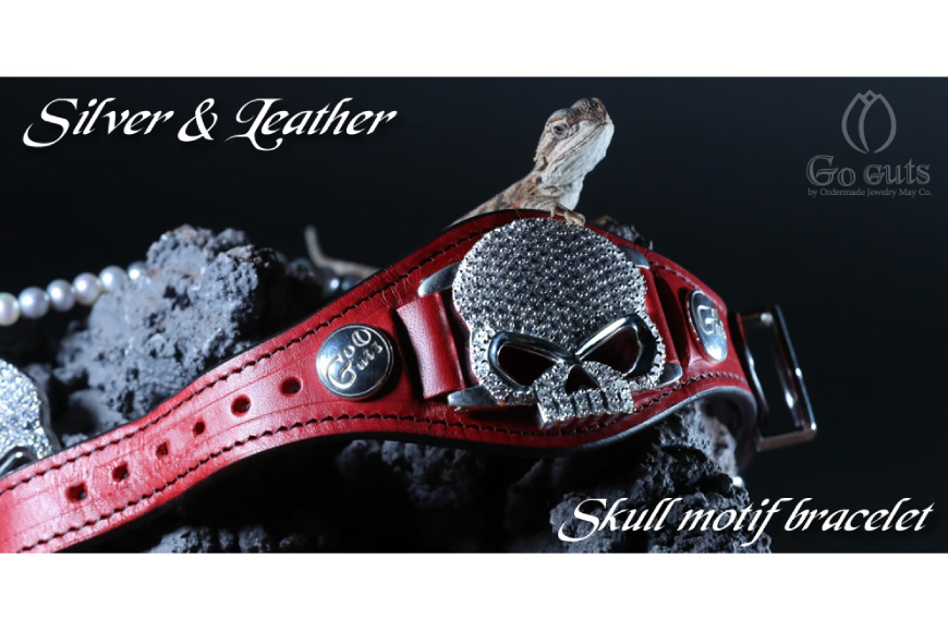 ブレスレット Go-Guts スカルモチーフ SV925 キュービック 【gg001-sv】 [オーダーメイドジュエリーメイ 山梨県 韮崎市 20743570] アクセ 腕輪 ブッテーロ 革