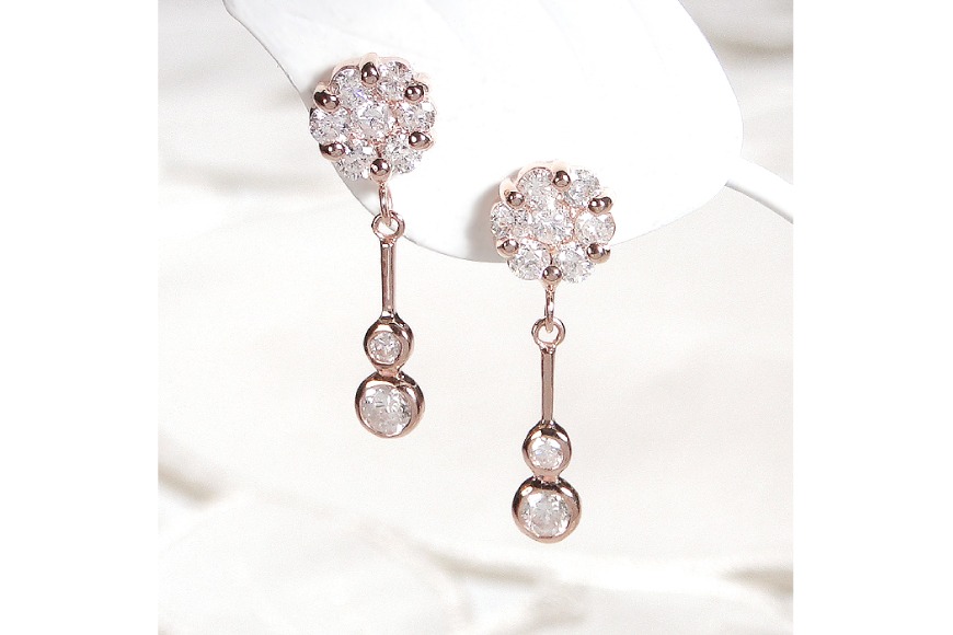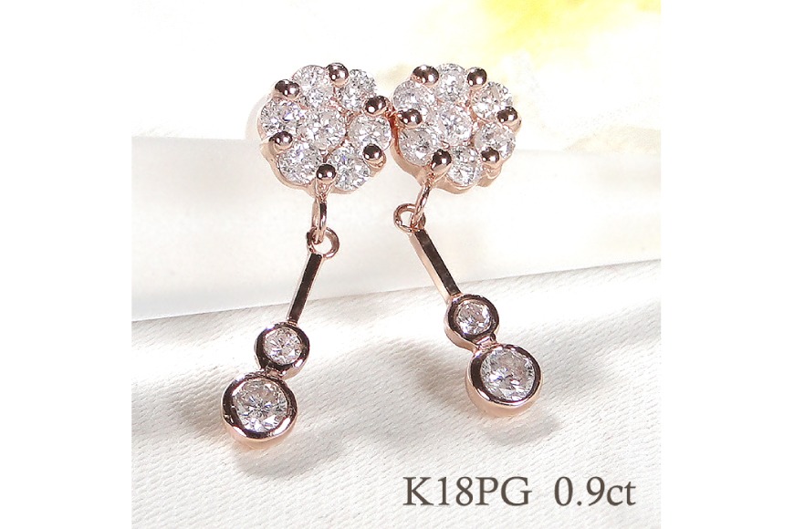 ピアス K18PG ピンクゴールド ダイヤモンド 【0.9ct】フラワー 花 揺れるピアス 振り子 スタッドピアス【f232-k18pg】 [株式会社オーダーメイドジュエリーメイ 山梨県 韮崎市 20742677] ピアス アクセサリー アクセ ジュエリー