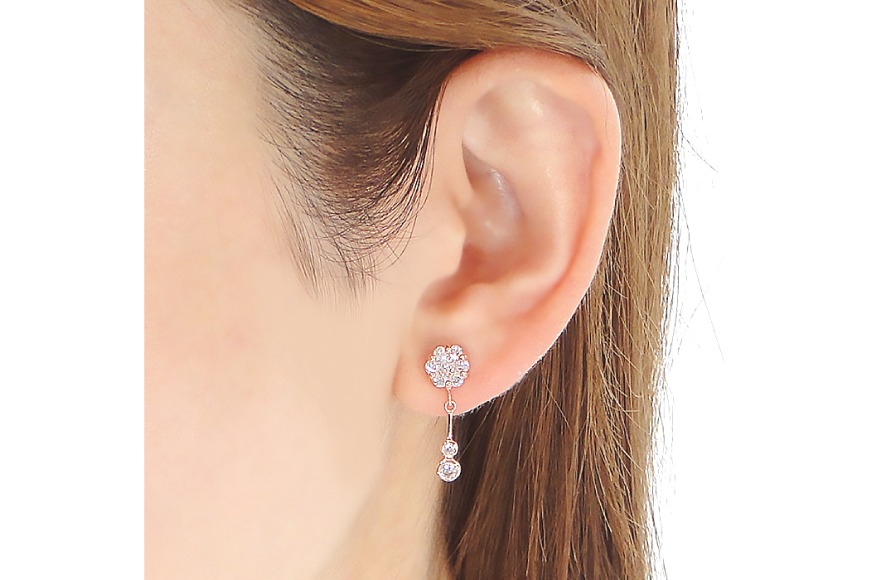 ふるさと納税 甲府市 K18WG フラワーモチーフダイヤモンドピアス HTOP-0015