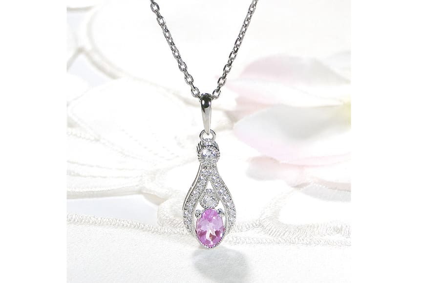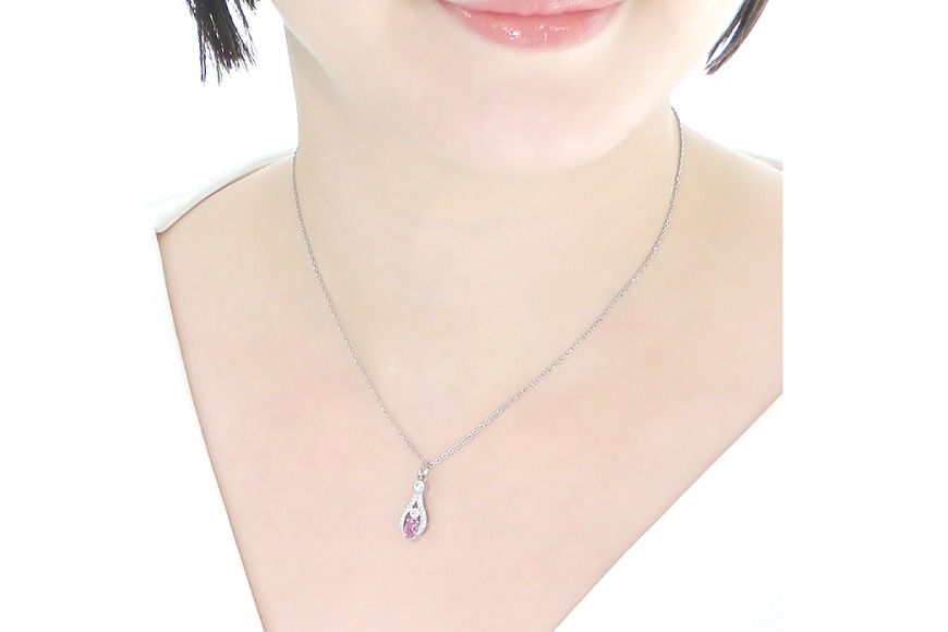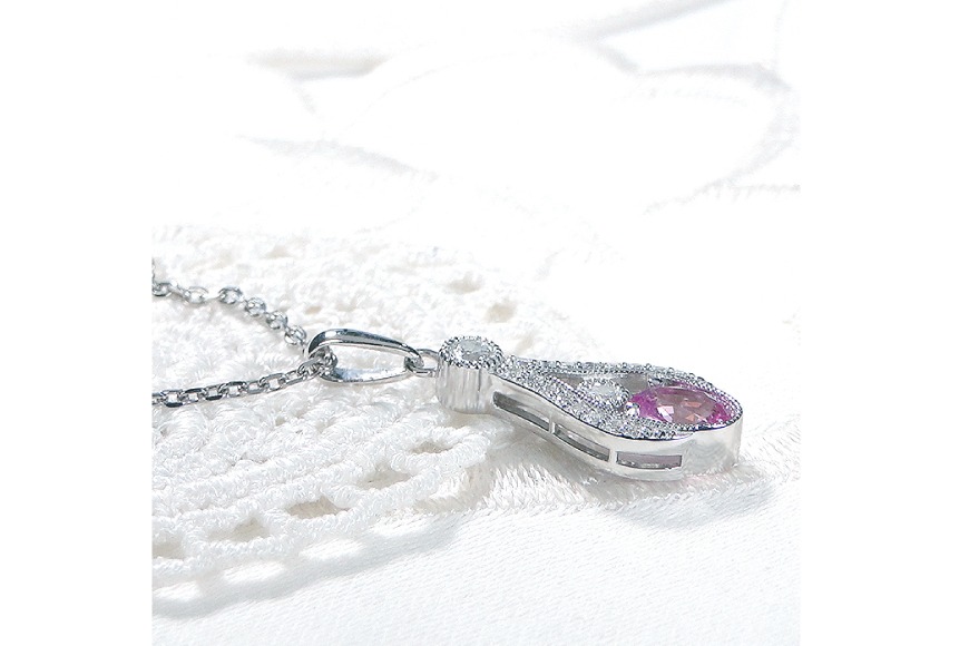 - ペンダント ネックレス PT900 プラチナ 0.17ct ダイヤモンド ピンクサファイア しずく つゆ型 ミル アンティーク誕生石 大粒 ジュエリー 【f253-pt-psa】 [オーダーメイドジュエリーメイ 山梨県 韮崎市 20745064]