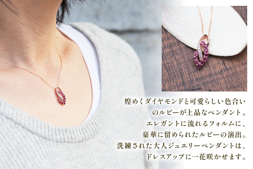 - ネックレス K18PG ピンクゴールド ルビー ダイヤモンド 0.05ct 【f134-rd-k18pg】 [オーダーメイドジュエリーメイ 山梨県 韮崎市 20745080] ジュエリー アクセサリー レディース ペンダント