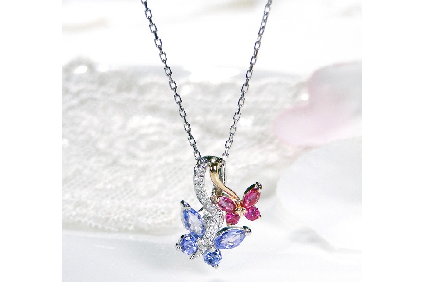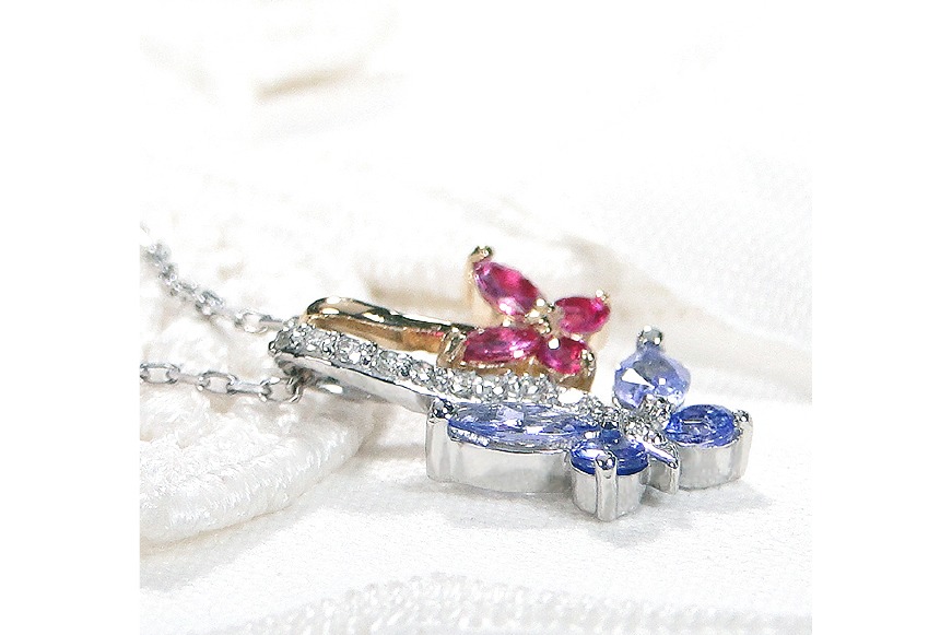 - ネックレス PT900/K18YG プラチナ ゴールド コンビ タンザナイト ルビー ダイヤモンド 蝶 ペンダント バタフライ 誕生石 【f281-ptyg-taru】 アクセサリー アクセ ジュエリー [オーダーメイドジュエリーメイ 山梨県 韮崎市 20745215]