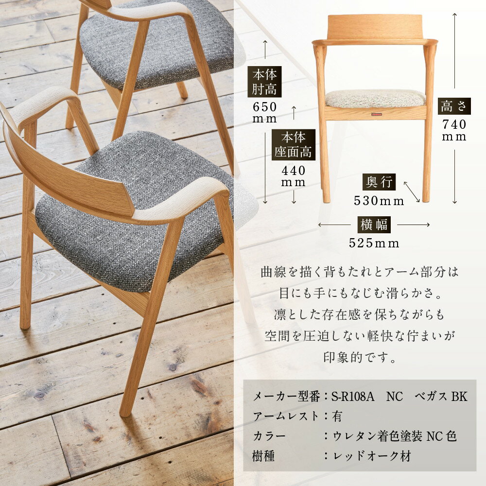- 【ふるさと納税】【shirakawa】ANDRE ダイニングチェア S-R108A/ひじ付 | 飛騨の家具 家具 インテリア 椅子 チェア おしゃれ 株式会社シラカワ FY057