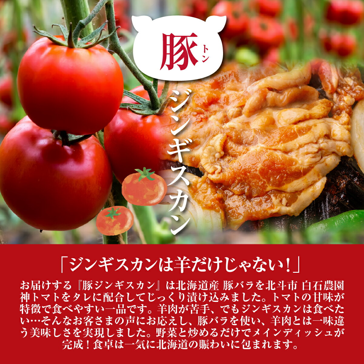 - 【ふるさと納税】トマト豚ジンギスカン 【 ジンギスカン 北海道 たれ 豚肉 小分け 豚バラ 豚 ブタ 肉 セット 味付き肉 冷凍 】 HOKAE006