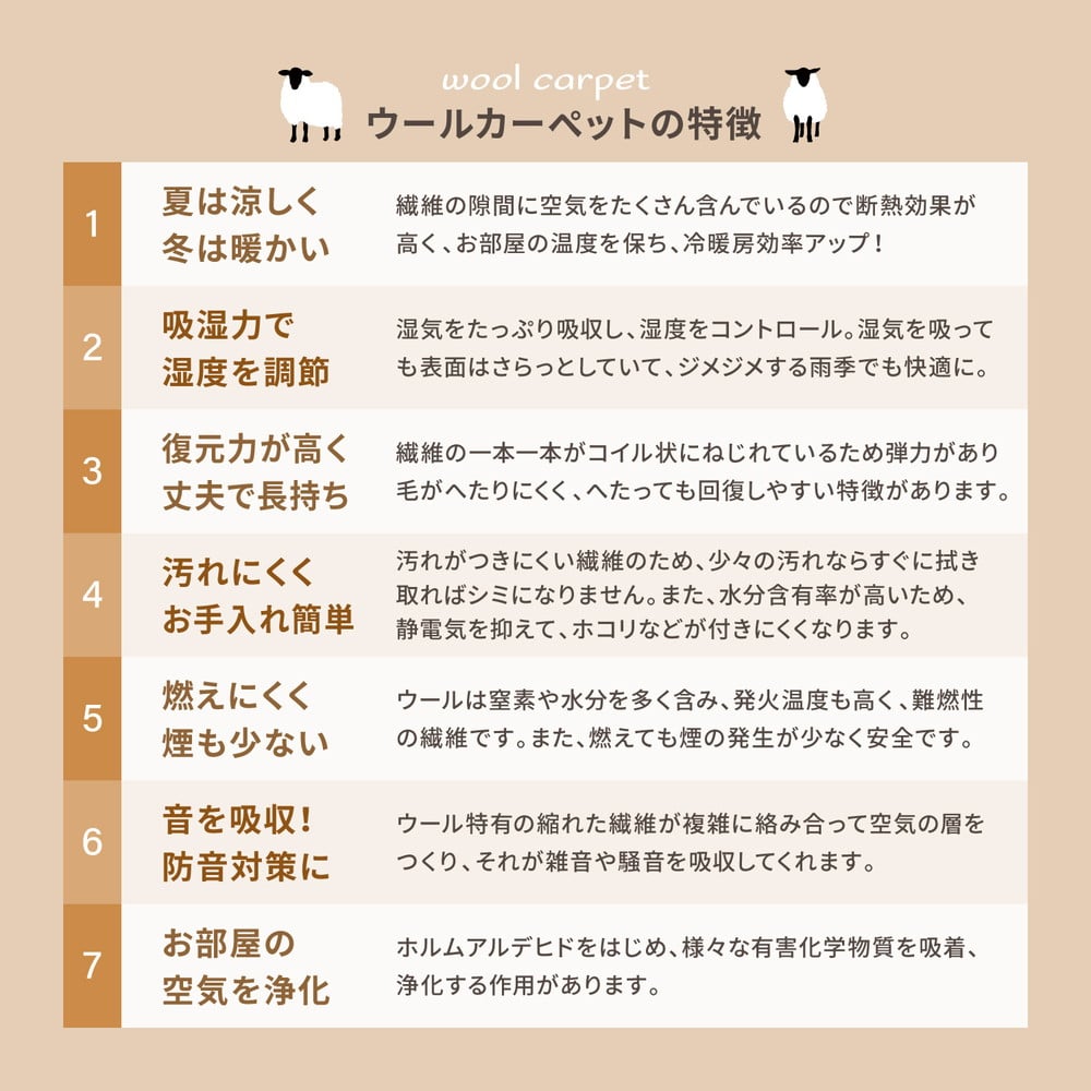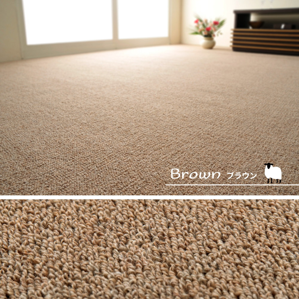 - 天然ウール100%の 防炎 カーペット 1枚 8帖 ブラウン 約352×352cm 600023680 [3528]