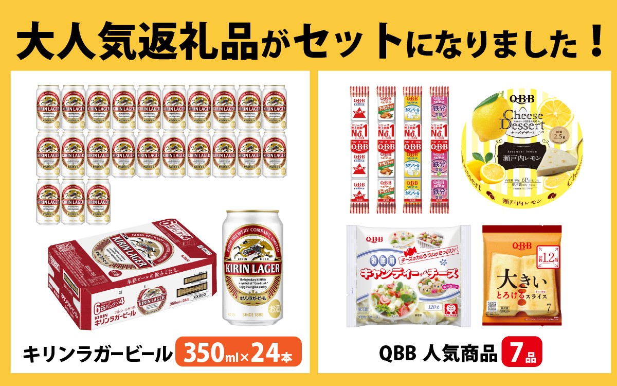 - キリンラガービール 350ml 24本 と QBB商品 7品 / ビール キリンビール キリン 麒麟 KIRIN お酒 アルコール 缶ビール 缶 ラガービール 神戸 工場 チーズ おつまみ 晩酌 ギフト 兵庫県
