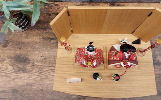 古代裂 座り雛 (籃胎漆器籃・ぼんぼり・組子屏風付き) 一点もの お雛様 人形 民芸品 工芸品