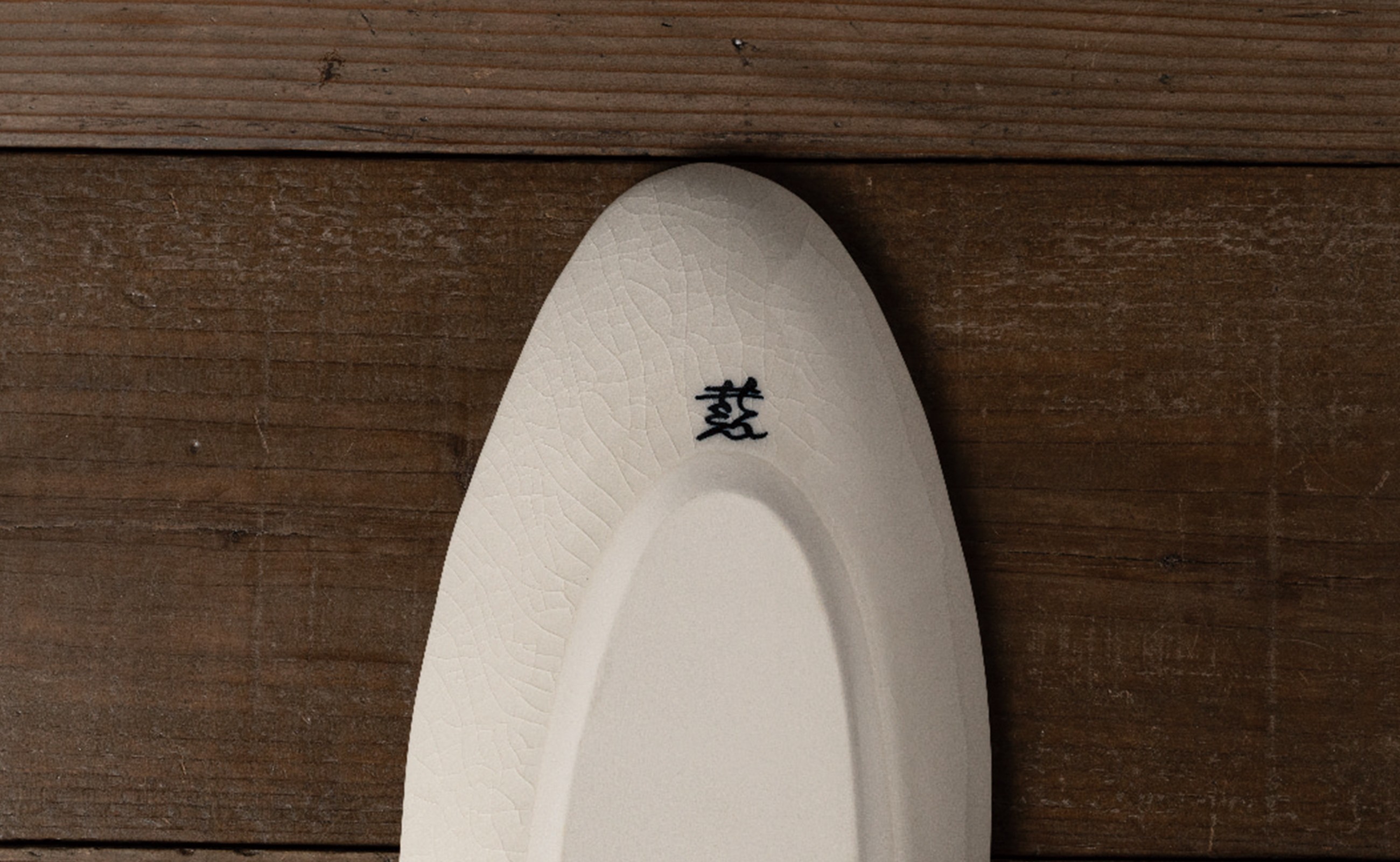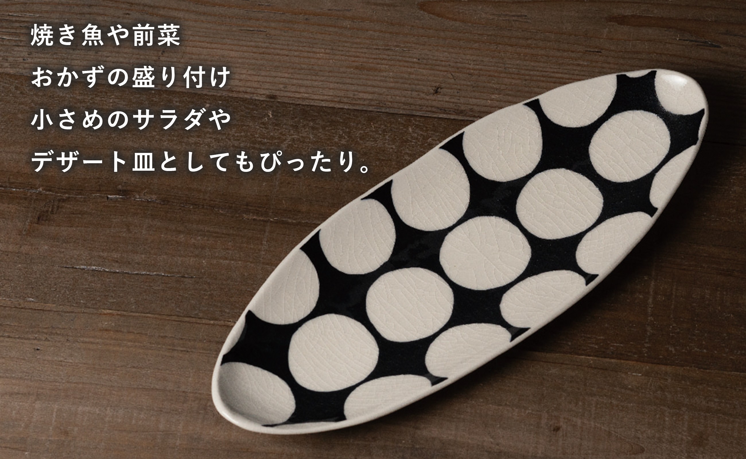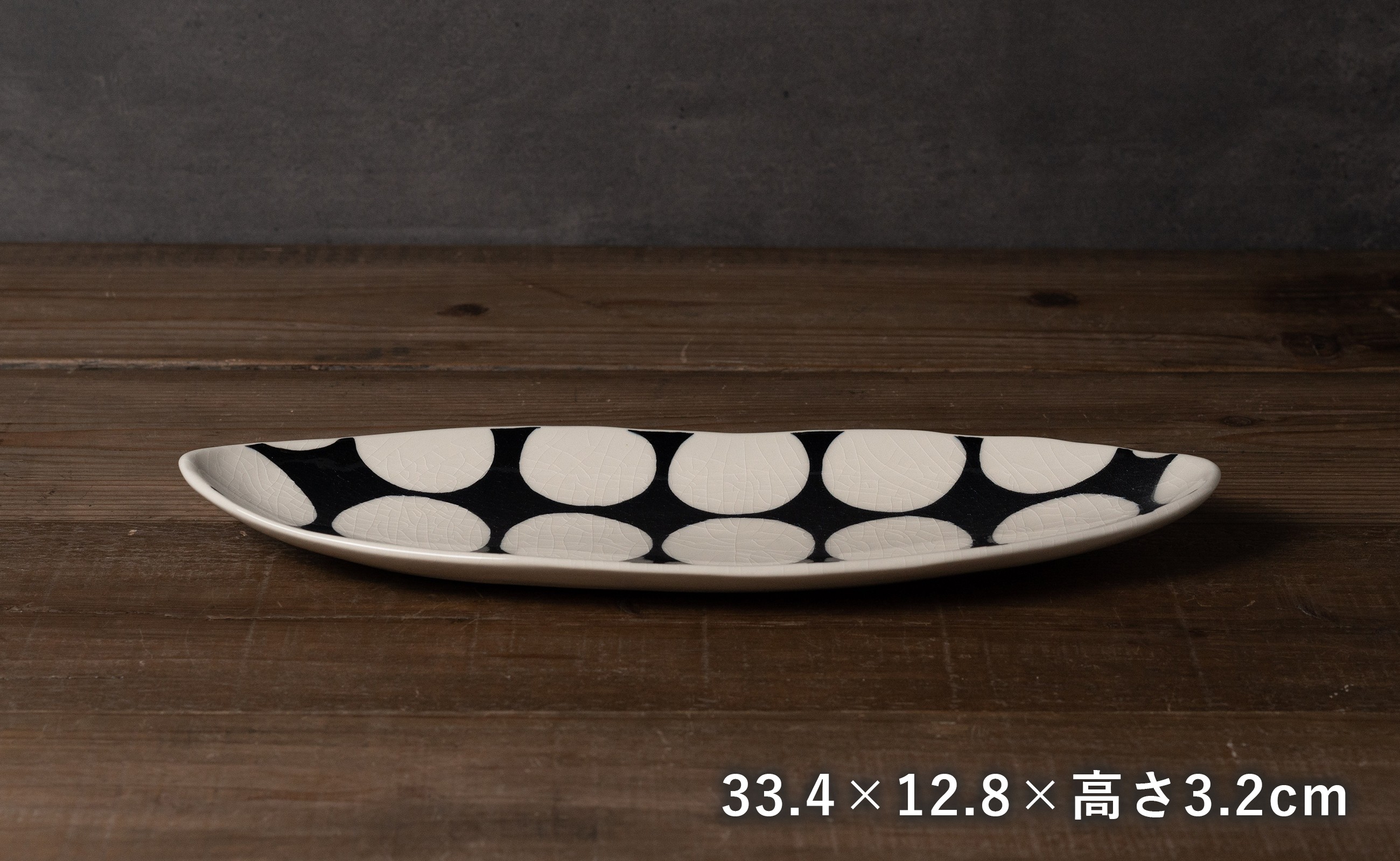 - 有田焼 手描き 染付 丸紋 舟型オーバル皿 1枚 喜鶴製陶