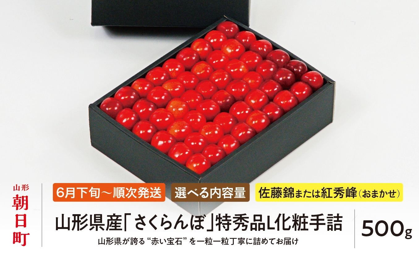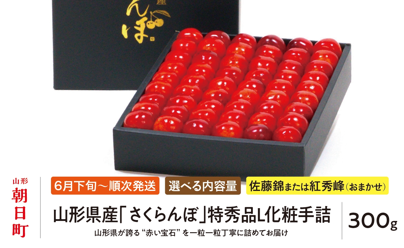 - < 先行予約 > 山形県産 さくらんぼ ( 佐藤錦 ・ 紅秀峰 ) 特秀品 化粧手詰 選べる容量 ( L 300g ・ L 500g ・ 2L 300g ・ 2L 500g )【2026年6月中旬から順次発送】 山形県 果物 サクランボ フルーツ 高級 贈り物 贈答 ギフト 初夏 夏 送料無料