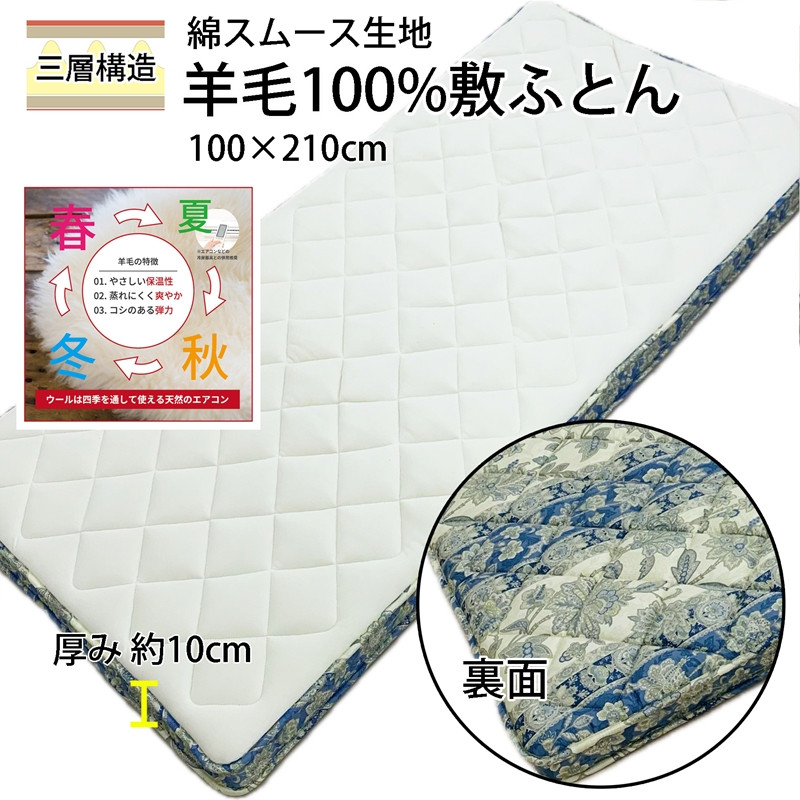 - 羊毛敷ふとん シングル 綿スムース生地 マチ付ボリュームタイプ K042230925SMA [5029-5031]