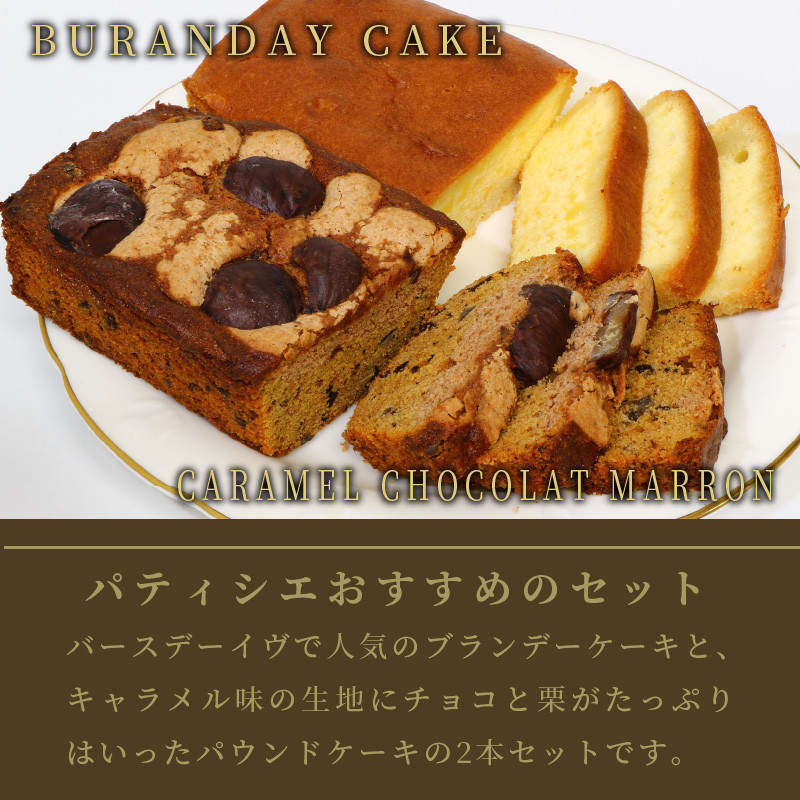 パウンドケーキ2本セット ブランデー、キャラメル ( パウンドケーキ ブランデーケーキ キャラメル マロン ショコラ 栗 焼き菓子 焼菓子 ケーキ 贈答 贈り物 プレゼント )【060-0023】