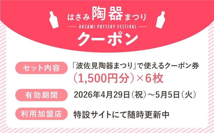 - 【波佐見 陶器市】2026年 波佐見陶器まつりで使えるクーポン 9,000円分【長崎県波佐見町】 [FB63] 陶器まつり 陶器市 クーポン