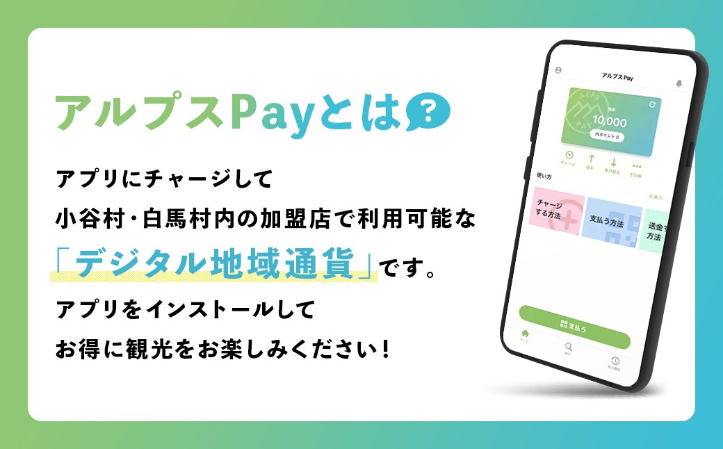 - 小谷村・白馬村 デジタル地域通貨「アルプスPay」 ふるさとポイント90,000pt(90,000円分) アルプスペイ 地域限定通貨 電子決済 キャッシュレス 飲食 宿泊 体験 電子通貨 長野県 北アルプス