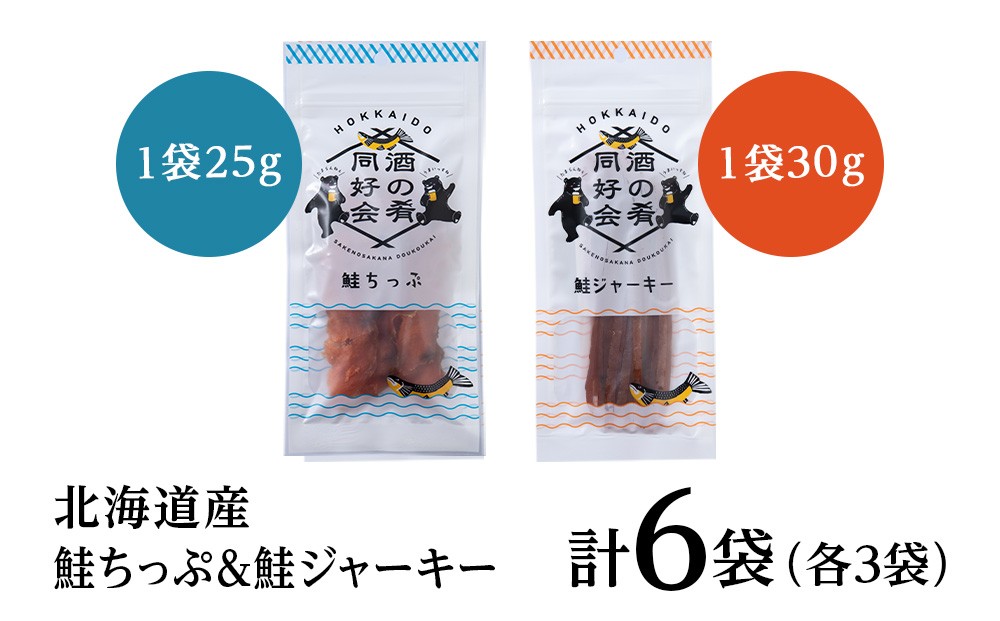 鮭チップ25g 鮭ジャーキー30g 各3袋 おつまみ 酒の肴 プレゼント おやつ ビール日本酒のあてに 御祝い 細長い ジャーキー シャケ 北海道 <佐藤水産>