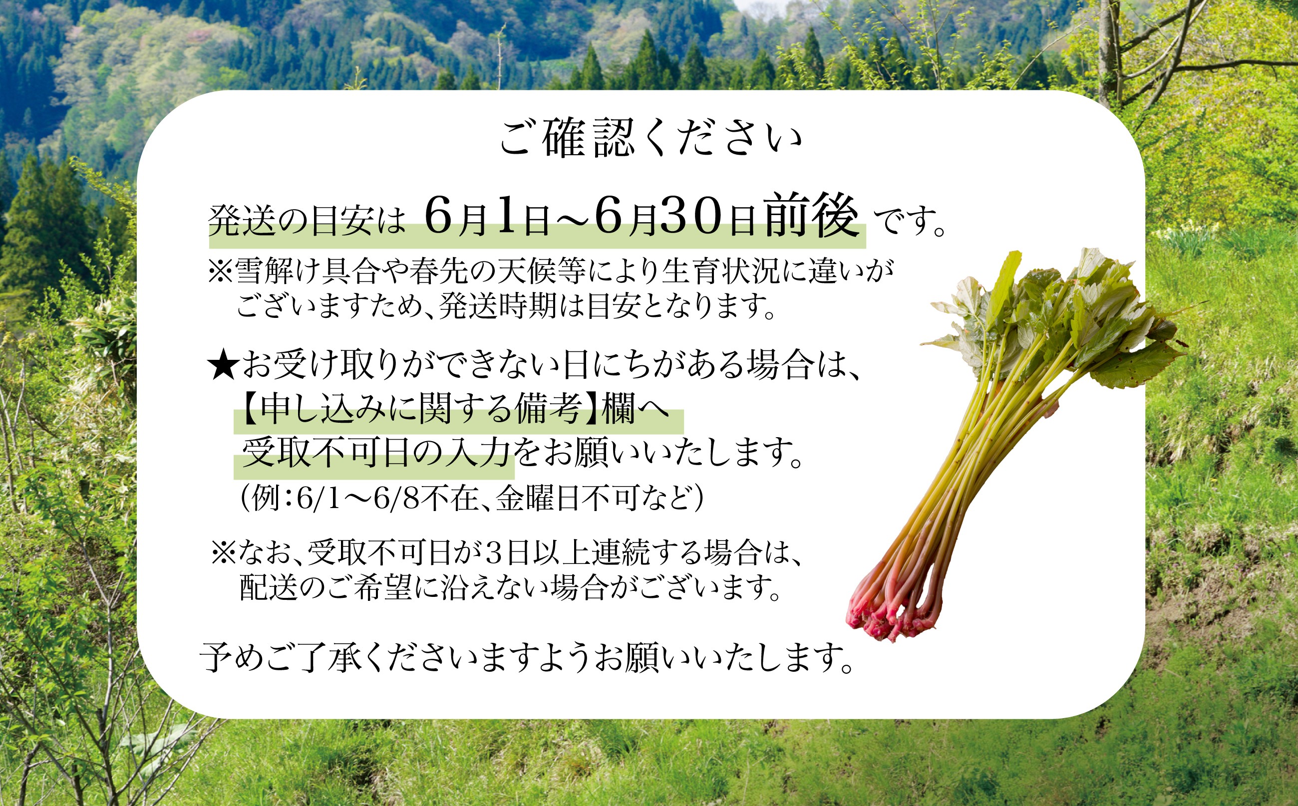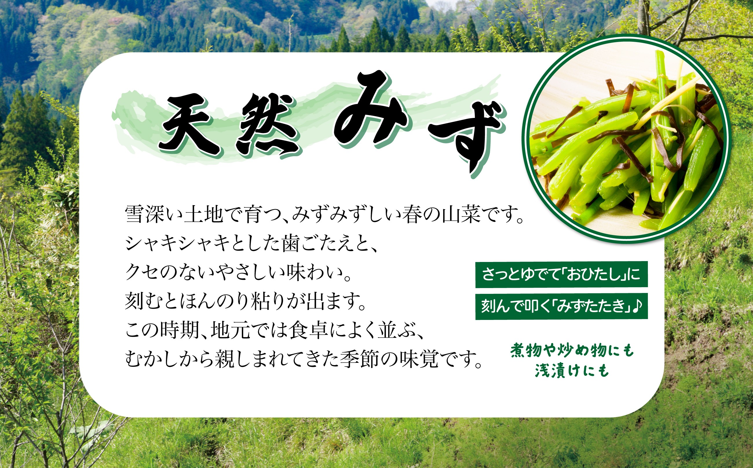 - 予約受付【天然山菜】みず 60P3207 / 山菜 天然 山 自然 みず ミズ うわばみそう ウワバミソウ 東北 秋田 大館 天然山菜 漬け物 煮物 炒め物 天然もの 春の山菜 春