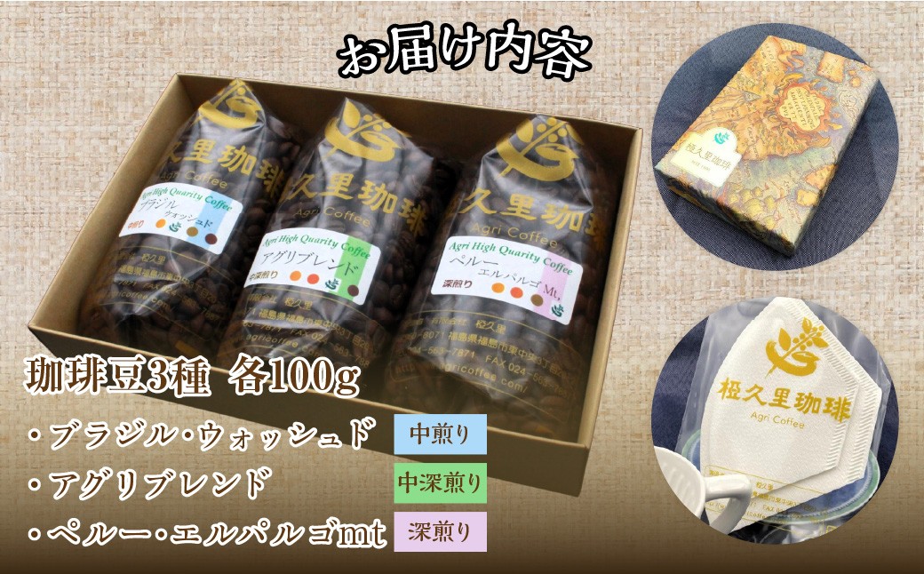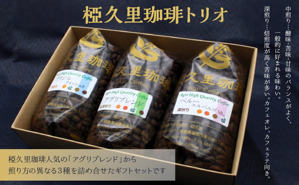 【選べる 豆/粉】椏久里珈琲トリオ(厳選コーヒー3種詰合せ)【 ふるさと納税 人気 おすすめ 珈琲 コーヒー コーヒー豆 粉 カフェ セット 本格 復興 福島 飯舘村 】ITTAD010-v