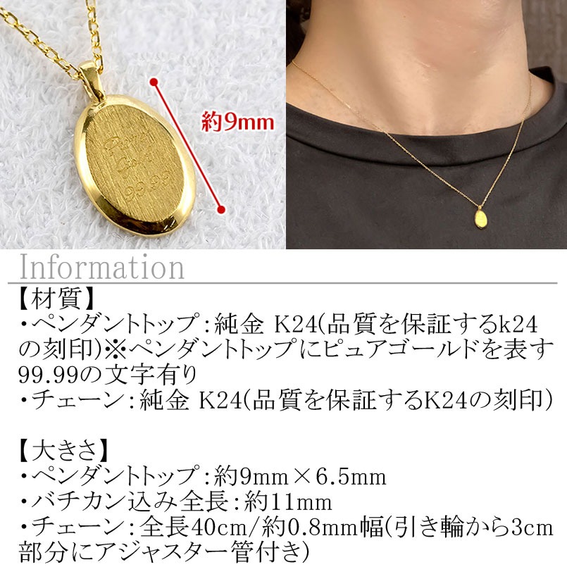 - ネックレス 純金 24金 ペンダントトップ レディース インゴット型 24k ゴールド チェーン 金属アレルギー 対応 K24 プレート オーバル 小ぶり 地金 ジュエリー シンプル 人気 普段 使い 250530mro202nK24 SWAA349