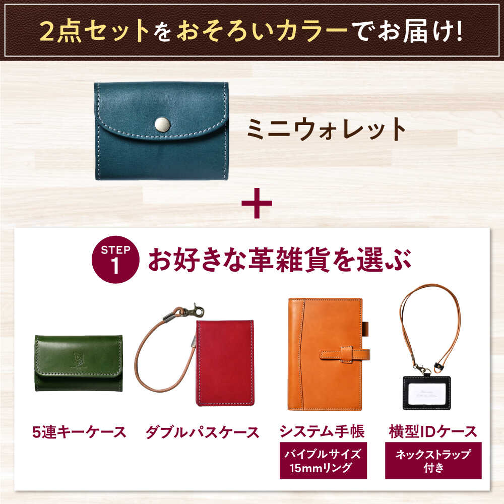 【ふるさと納税】【選べるカラー】本革ミニウォレットと選べる革雑貨 2点セット 滋賀県長浜市/株式会社ブラン・クチュール[AQAY408] 財布 革小物 本革 ヌメ革 ミニ財布 IDケース キーケース システム手帳 セット 小物セット 日用雑貨 レザー サイフ 小銭入れ プレゼント