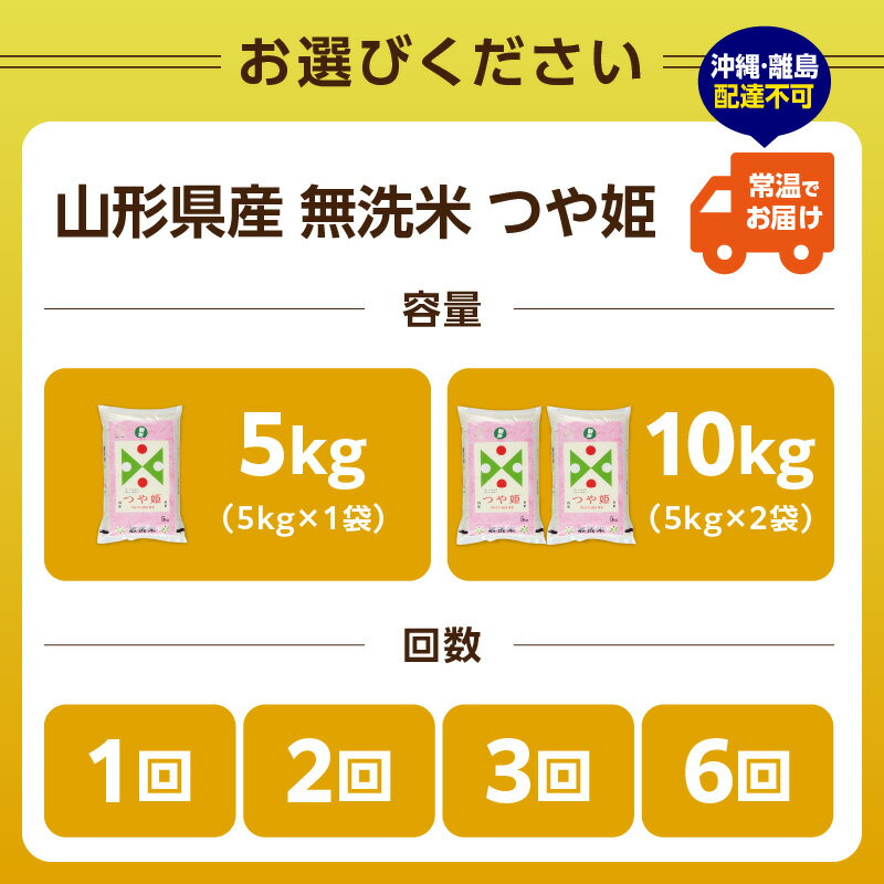 - 【ふるさと納税】山形県産 無洗米 令和7年産 つや姫 選べる内容量(5kg・10kg)・配送回数(1~6回)【山形県産 BG精米製法】 山形県産 お米 米 ブランド米 BG精米製法 無洗米 つや姫 定期便