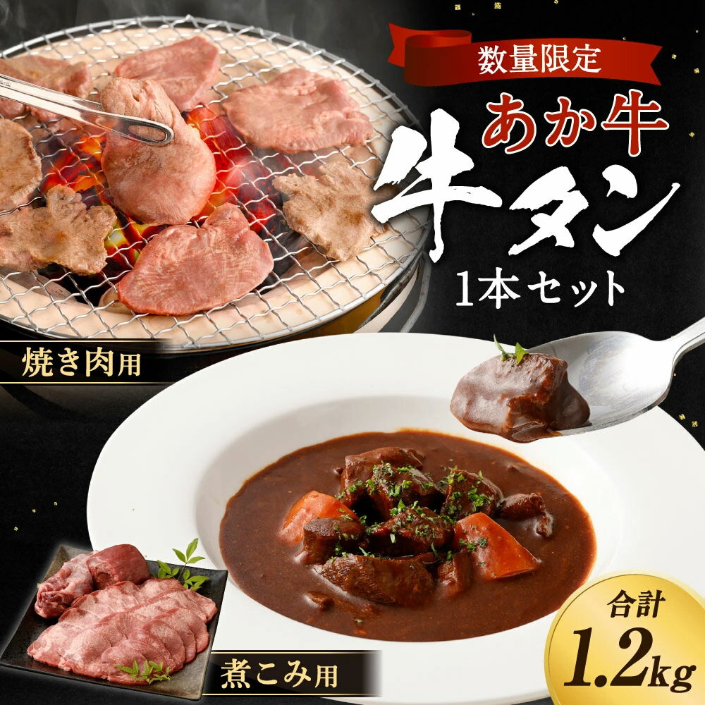 【ふるさと納税】数量限定!熊本あか牛タン1本セット 計約1.2kg タン元(焼き肉用)・タン下(煮込み加工用) あか牛 牛肉 お肉 タン タンゲタ タン下 タン先 厚切り 焼肉 焼き肉 煮込み料理 シチュー スープ 冷凍 国産 九州 熊本県 人吉市 送料無料
