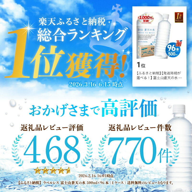 - 富士山蒼天の水 500ml×96本(4ケース) ※沖縄県、離島不可