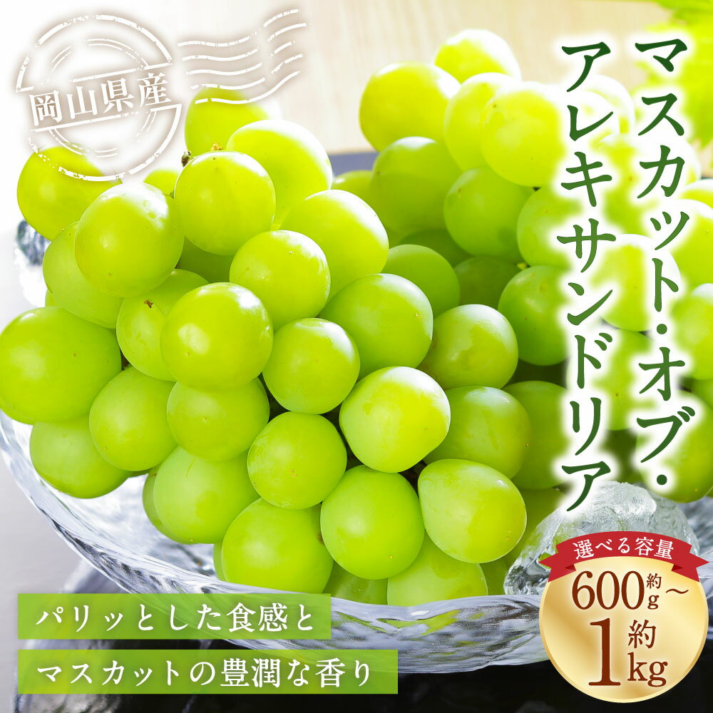- 【ふるさと納税】<選べる内容量>岡山県産 マスカット・オブ・アレキサンドリア 約600g×1房 / 約700g×1房 / 計約800g(2房) / 計約1kg(2房) ぶどう ブドウ 葡萄 フルーツ くだもの 果物 果実 デザート 冷蔵 国産 美咲町 送料無料 【2026年8月下旬~9月下旬発送予定】
