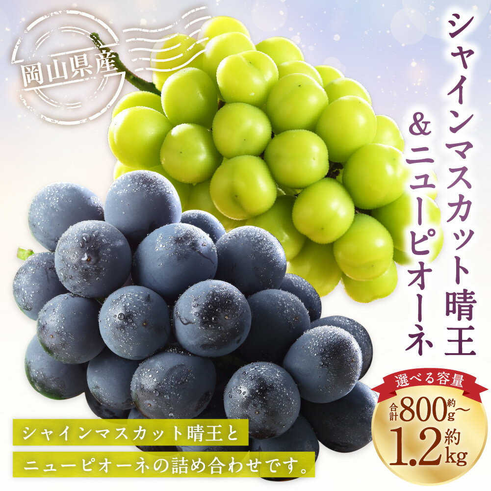 - 【ふるさと納税】<選べる内容量>岡山県産 シャインマスカット 晴王・ニューピオーネ 詰合せ 計約800g / 計約1kg / 計約1.2kg Lサイズ 2Lサイズ 3Lサイズ ぶどう ブドウ 葡萄 フルーツ くだもの 果物 果実 冷蔵 国産 送料無料 【2026年6月下旬~7月下旬発送予定】