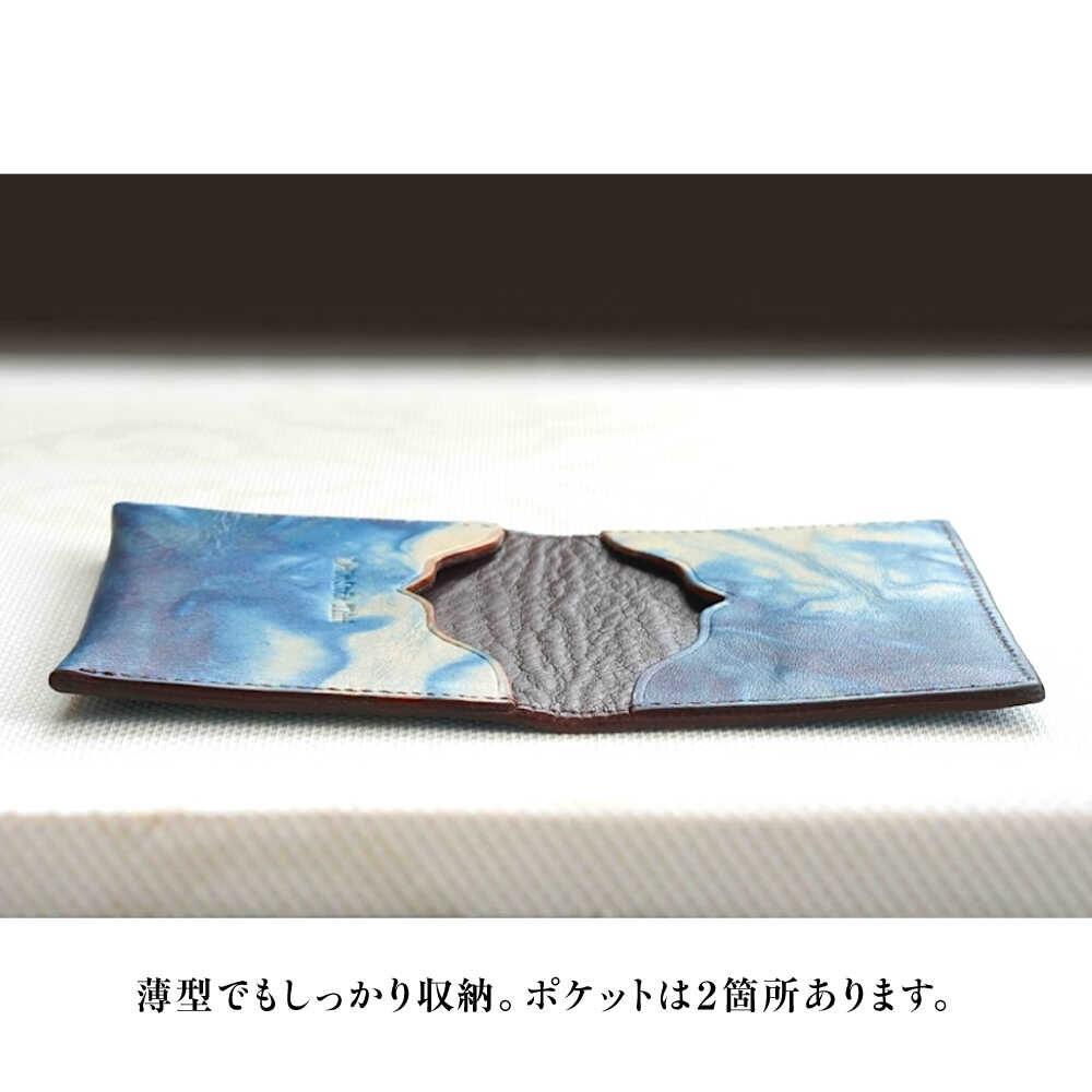- 【ふるさと納税】名刺入れ 「ポム」 薄藍 瀬戸内の空 天然藍染め・福山レザー 自社一貫製造 おすすめ 人気 カードケース ビジネス ハンドメイド 経年変化 藍染め 手染め ギフト プレゼント メンズ レディース 本革 レザー 広島県福山市/株式会社サード[BACM014]