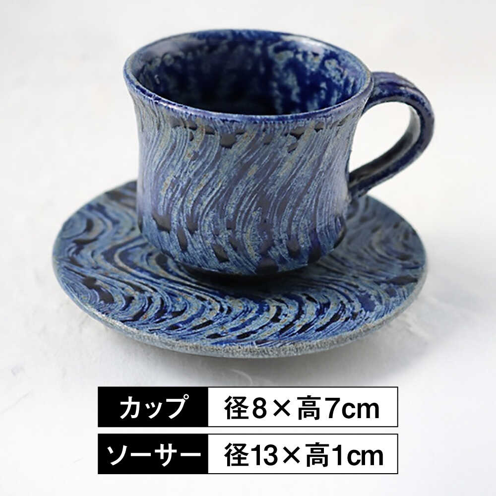 【ふるさと納税】【美濃焼】ぎやまん陶 コーヒーカップ&ソーサー 茄子紺ブルー【カネコ小兵製陶所】【TOKI MINOYAKI返礼品】≪土岐市≫ 食器 ティーカップ 小皿 [MBD094]