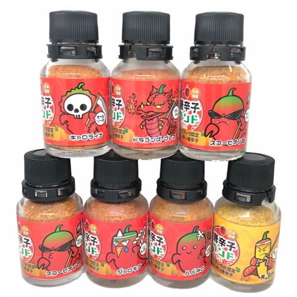 - 激辛唐辛子一味7セット 国産唐辛子ランド フルセット 10g×7本 (キャロライナ・リーパー 一味,ドラゴンズ・ブレス 一味,スコーピオン・BT 一味,スコーピオン・M 一味,ブート・ジョロキア 一味,ハバネロ 一味,黄金一味)