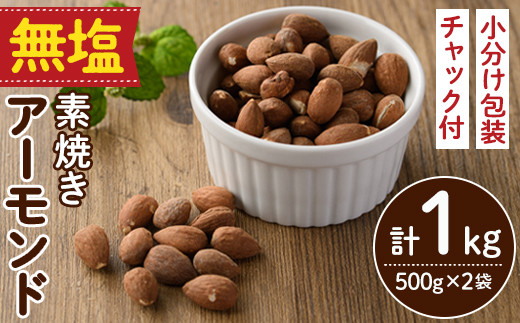 無塩の素焼きアーモンド (計1kg・500g×2袋)アーモンド 食塩不使用 素焼き ノンオイル 油不使用 おつまみ おやつ 小分け 常温 常温保存 ロカボ 低GI チャック付き【ksg1336-B】【nono'smuffin】