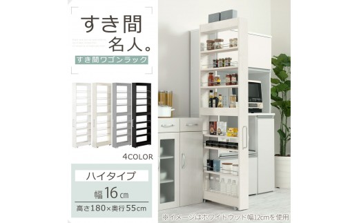 - 【完成品+設置付き】すき間ワゴンラック ハイタイプ〔幅16cm〕(ホワイトウッド)隙間収納 キッチンラック スリム スリムラック キッチン キッチンワゴン 収納 すき間収納 ランドリー ラック 9段 KKONRA945182-0-WWA