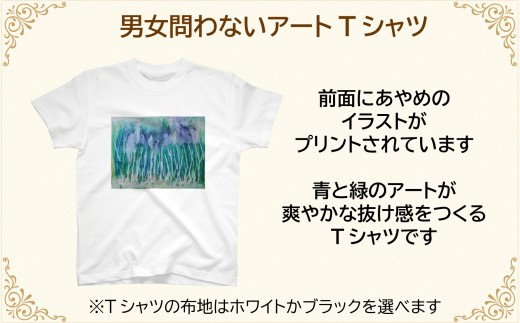 【選べるサイズ・カラー】オリジナル アートTシャツ 「あやめ」 S M L LL ユニセックス 洋服 白 黒 メンズ レディース 半袖 フロントプリント ティーシャツ T-shirt 送料無料 就労継続支援B型 ふくちゃん 福島県 新地町