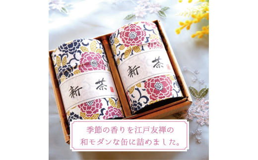 【新茶】【ギフト対応可能】2026年 新茶 江戸友禅の和モダンな缶に 八女新茶ギフト 茶 お茶 八女茶 新茶 茶葉 ギフト プレゼント 贈り物 モダン 福岡県 八女市