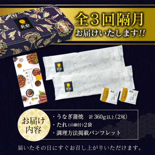 <数量限定!!>うなぎ 定期便 国産 鰻 蒲焼 2尾セット 全3回 隔月定期便(合計1kg以上)魚介 贈答品 ギフト ウナギ 期間限定 鰻楽【E192】