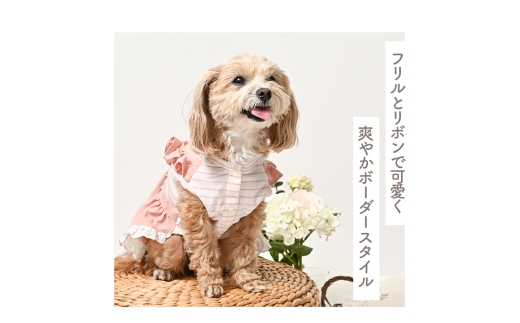 - リボンボーダーワンピース ピンク (L) かわいい ドッグウェア 春夏 小型犬 【ココアトワ(cocoAtoi)】 [№5223-7108]0236