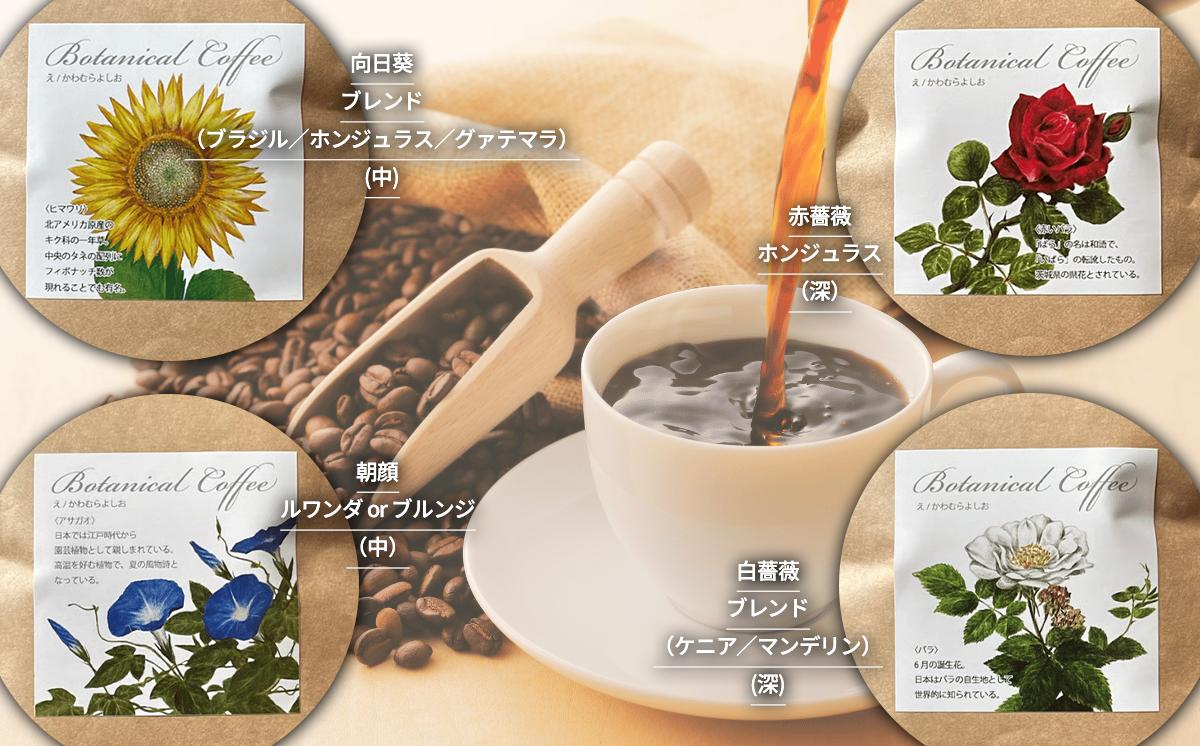 - コーヒー豆 季節の草花珈琲( 豆のまま )100g × 4種 計400g もっくん珈琲 │ コーヒー 珈琲 粉 coffee 自家焙煎 スペシャルティコーヒー ギフト 茨城県 つくば市