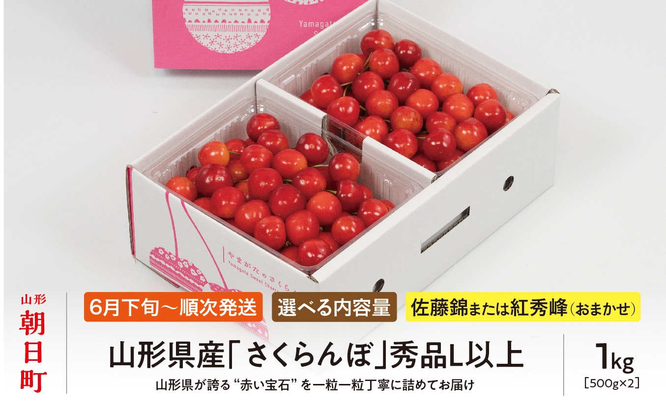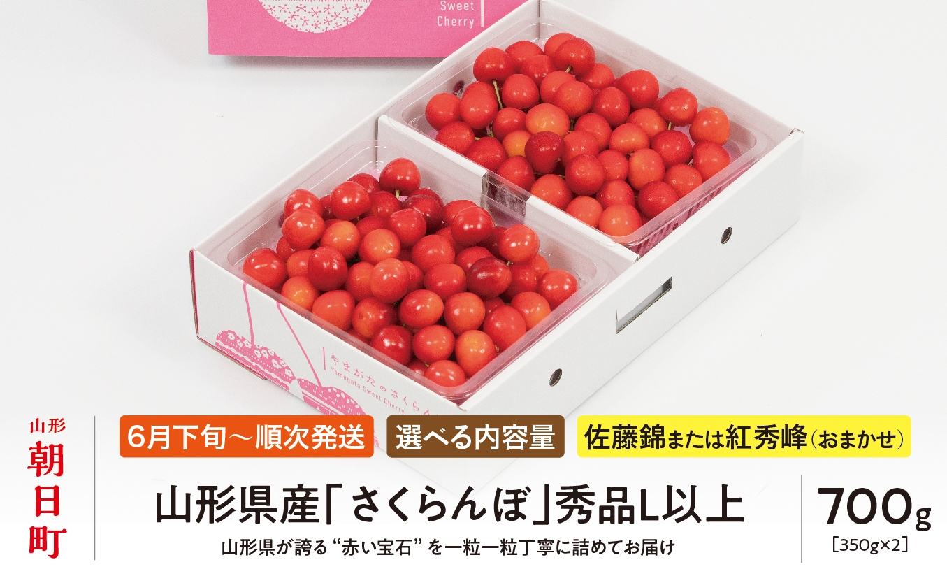 - < 先行予約 > 山形県産 さくらんぼ ( 佐藤錦 ・ 紅秀峰 ) 秀品 L以上 選べる容量 ( 300g ・ 500g ・ 700g ・ 1kg ) 【2026年6月中旬から順次発送】 山形県 果物 サクランボ フルーツ 贈り物 ギフト 贈答 初夏 夏 送料無料
