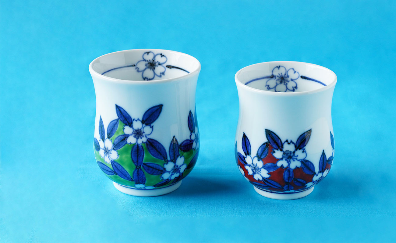 - 有田焼 染錦桜絵 睦揃え 【神田陶器店】桜 さくら サクラ お茶碗 夫婦茶碗 湯呑 ペア ギフト 食器 器 A45-394