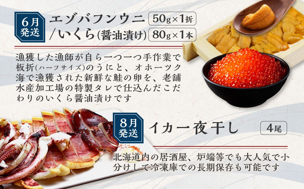 - 【定期便】オホーツク網走人気の海鮮グルメ 偶数月お届け定期便全6回【 ふるさと納税 人気 おすすめ ランキング たらこ ホタテ しじみ うに いくら いか ほっけ 釣きんき 海鮮 定期便 6か月 6回 オホーツク タラコ 帆立 ほたて シジミ ウニ 雲丹 イクラ いくら醤油漬 ホッケ キンキ 北海道 網走市 送料無料 】 ABAO2204