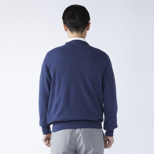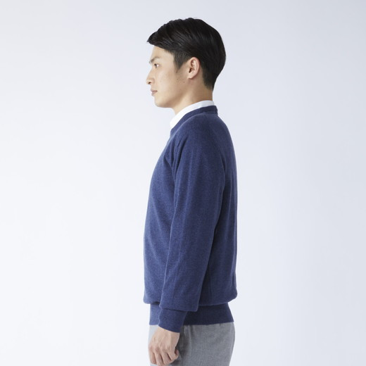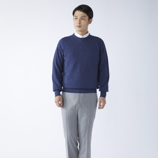 - 日本製 カシミヤ100% 丸首セーター インディコブルー Sサイズ